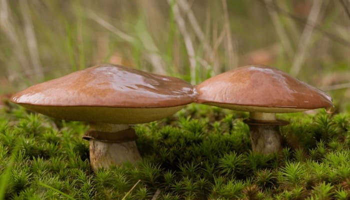 Окрас их шляпок, имеющих клейкую и блестящую поверхность, варьируется от коричнево-желтоватого до коричнево-красного оттенка. Кожа шапочки такого лесного обитателя тонка и легко снимается. Слой под ней, демонстрирующий трубчатую текстуру, имеет сначала близкий к белому оттенок, а через некоторое время приобретает желтизну.