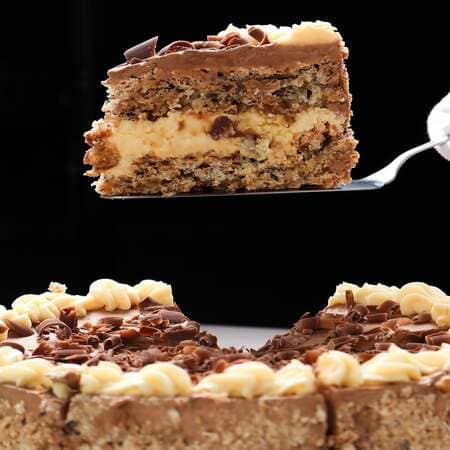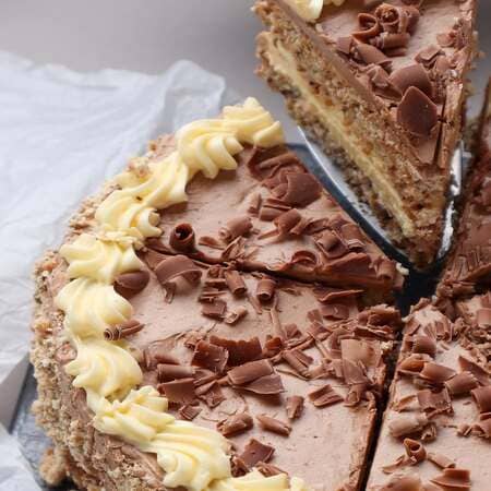 Если вы приготовили торт Эстерхайзи, насладитесь нежным бисквитом с орехами и шоколадным кремом в классическом сочетании.