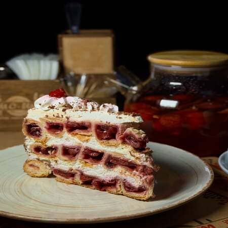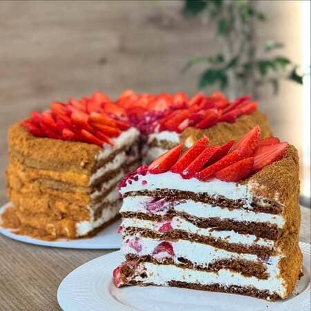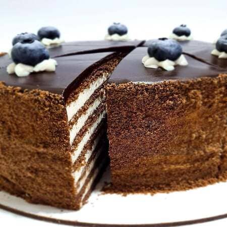 Торт Спартак сочетает шоколадные лепешки и нежный крем, даря насыщенный и сбалансированный вкус.