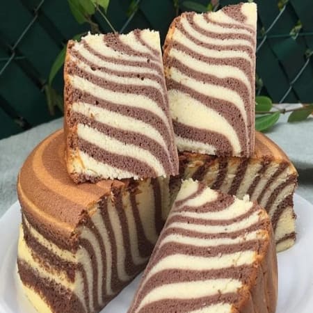 Торт Зебра поражает гармоничным сочетанием светлого и темного бисквита, создавая нежный вкус и увлекательный узор.